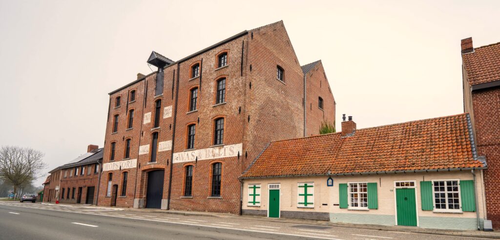 Het Hoppehuisje ligt naast een uniek stuk erfgoed: het voormalige hopmagazijn van de familie Veys, herkenbaar aan de geveltekst “V.B. – J.G. Veys. Houblons – Hophandel”. Tijdens WOI deed het dienst als lazaret, later als tabaksmagazijn. Binnen vind je nog originele elementen zoals gietijzeren zuilen, houten droogzolders en historische hop persen. Het hopmagazijn is in privéhanden en niet te bezoeken.